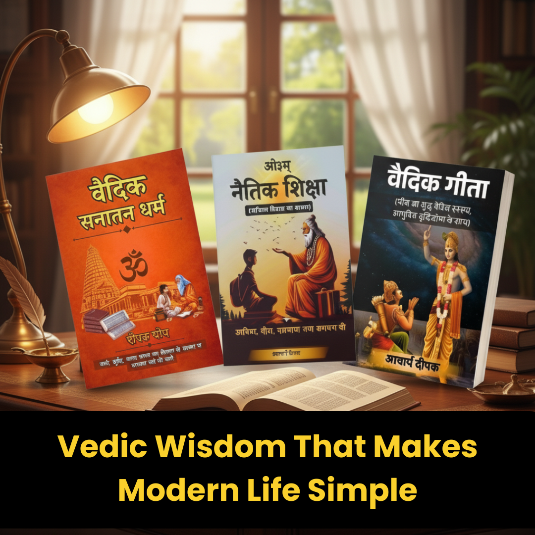 कोर्स के साथ आपको आचार्य दीपक घोष द्वारा रचित 3 विशेष वैदिक ई-बुक्स मिलेंगी — जिनमें तर्क, विज्ञान और शास्त्र प्रमाण सहित व्याख्याएँ हैं।