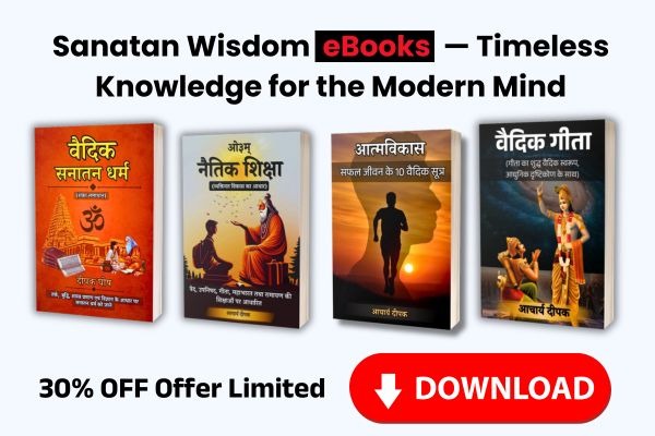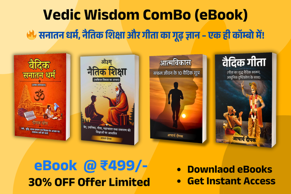अब एक ही पैकेज में तीन अद्भुत ईबुक प्राप्त करें, जो आपको वैदिक सनातन धर्म, नैतिकता और भगवद गीता की गहरी समझ प्रदान करेंगी।